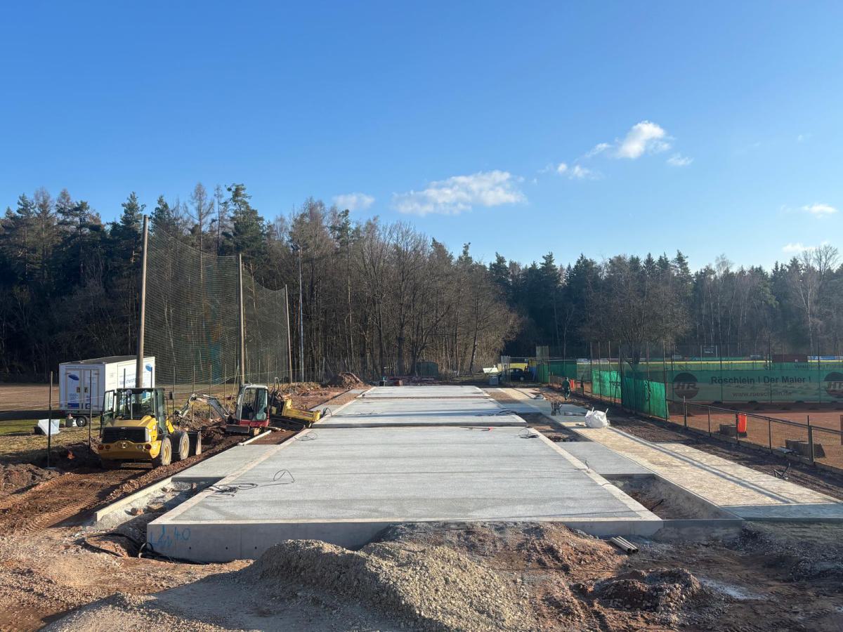 Die Sportart Padel wurde in den 1960er-Jahren in Mexiko erfunden und hat sich besonders in Spanien und Lateinamerika rasant verbreitet. In den letzten Jahren erlebt der Sport auch in Europa – insbesondere in Deutschland – einen regelrechten Boom. Padel ist eine dynamische Rückschlagsportart, die Elemente aus Tennis und Squash kombiniert. Gespielt wird meist im Doppel auf einem kleineren Feld, das von Glas- und Gitterwänden umgeben ist. Diese Wände dürfen aktiv ins Spiel einbezogen werden, was für spannende und abwechslungsreiche Ballwechsel sorgt. Das Bild zeigt einen Padelplatz noch im Bau, die Gitterwände sind aktuell bereits montiert.